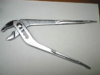 2008-07-19 ウォータポンププライヤ 電験・電気工事士 ウォータポンププライヤを購入.これも第二種電気工事士用技術試験用. 「ねじなし電線管とアウトレットボックスの接続」や「PF管とアウトレットボックスの接続」などに用いるらしい.これも日常生活において,使えなさそうな工具というのはよく知られた事実.