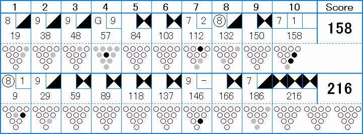 2010-03-20 2010年3月19日の結果 ボウリング 2010年3月19日のボウリング結果。 久しぶりに200点超えゲームがありました 最近,地域のボウリング大会や会社のボウリング大会などのきっかけがないとボウリングに行けていないのですが,点数はそこそこ出ています。 ゲーム数を増やすより,集中してボウリングすることが好成績につながるようです。(とは言え,集中することの難しさは半端ではありませんが。)